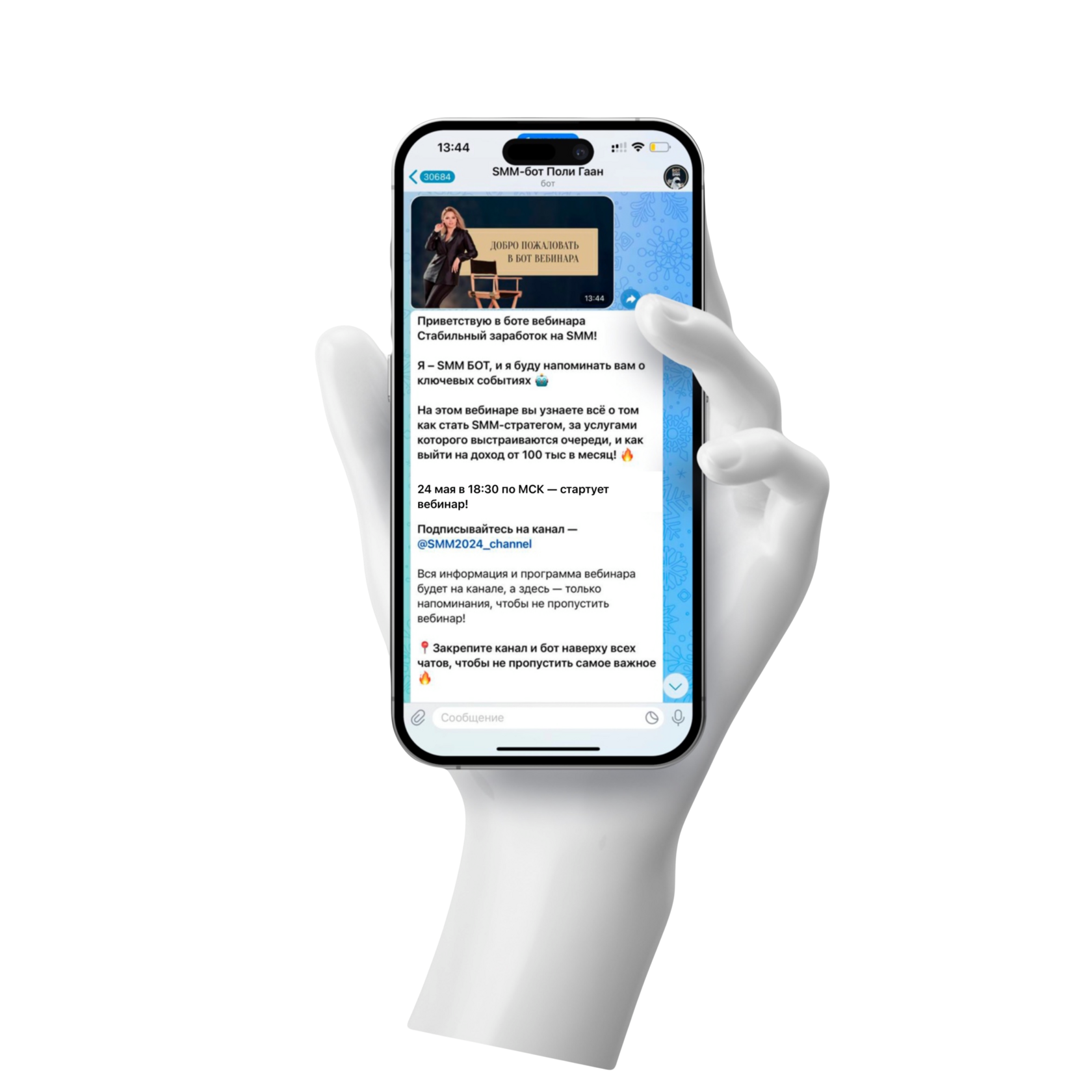 и переходите в бот и канал вебинара